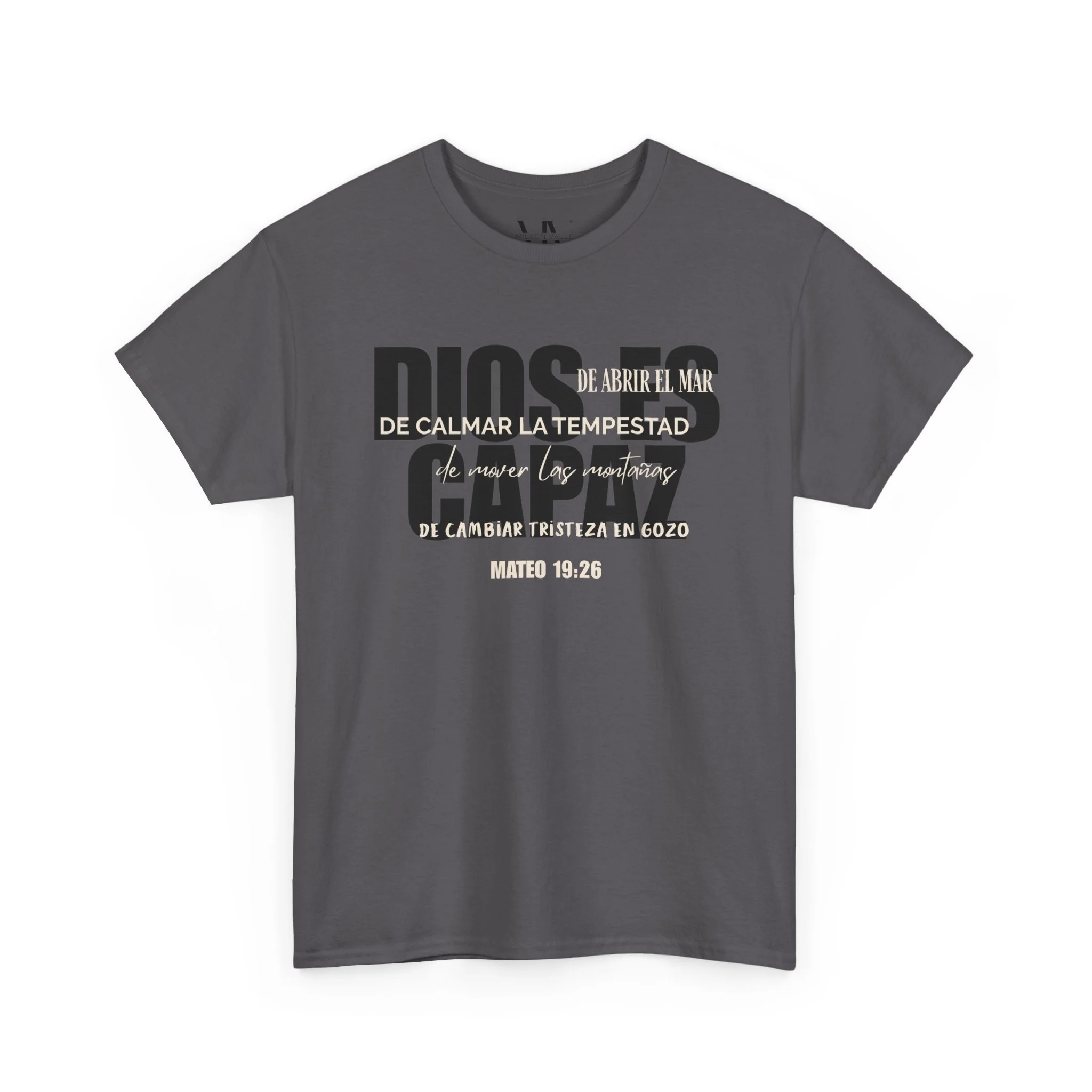 A soft, sturdy classic tee built for everyday faith-forward wear. The muted charcoal canvas and distressed block lettering give it a lived-in, low-key look that layers easily under jackets or stands on its own. Wear it to church, volunteer days, or quiet mornings with coffee — the message rests confident but quiet, speaking to steady hope rather than showy slogans. The relaxed cut and tear-away label keep comfort front and center, while durable printing methods ensure the design stays crisp wash after wash. Ethically made from quality cotton with thoughtful construction details, this tee feels familiar from the first wear and keeps earning its place in your rotation.