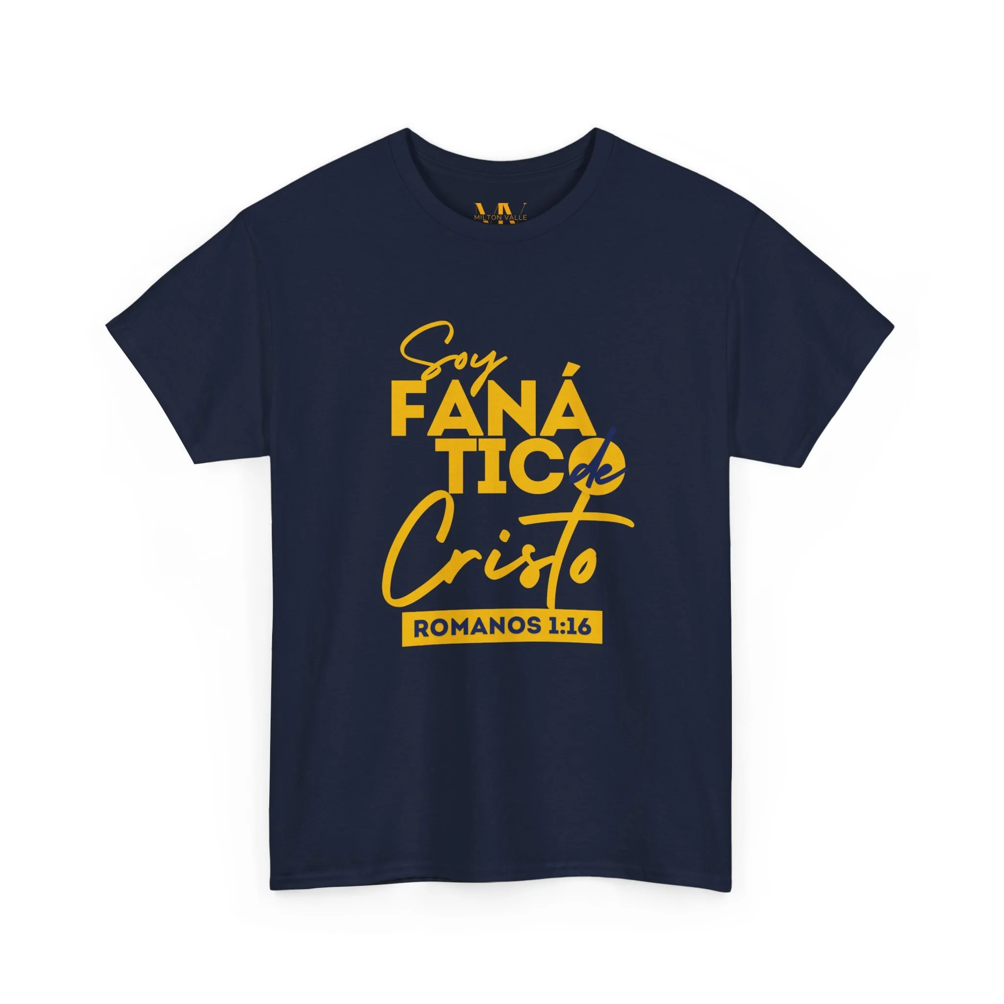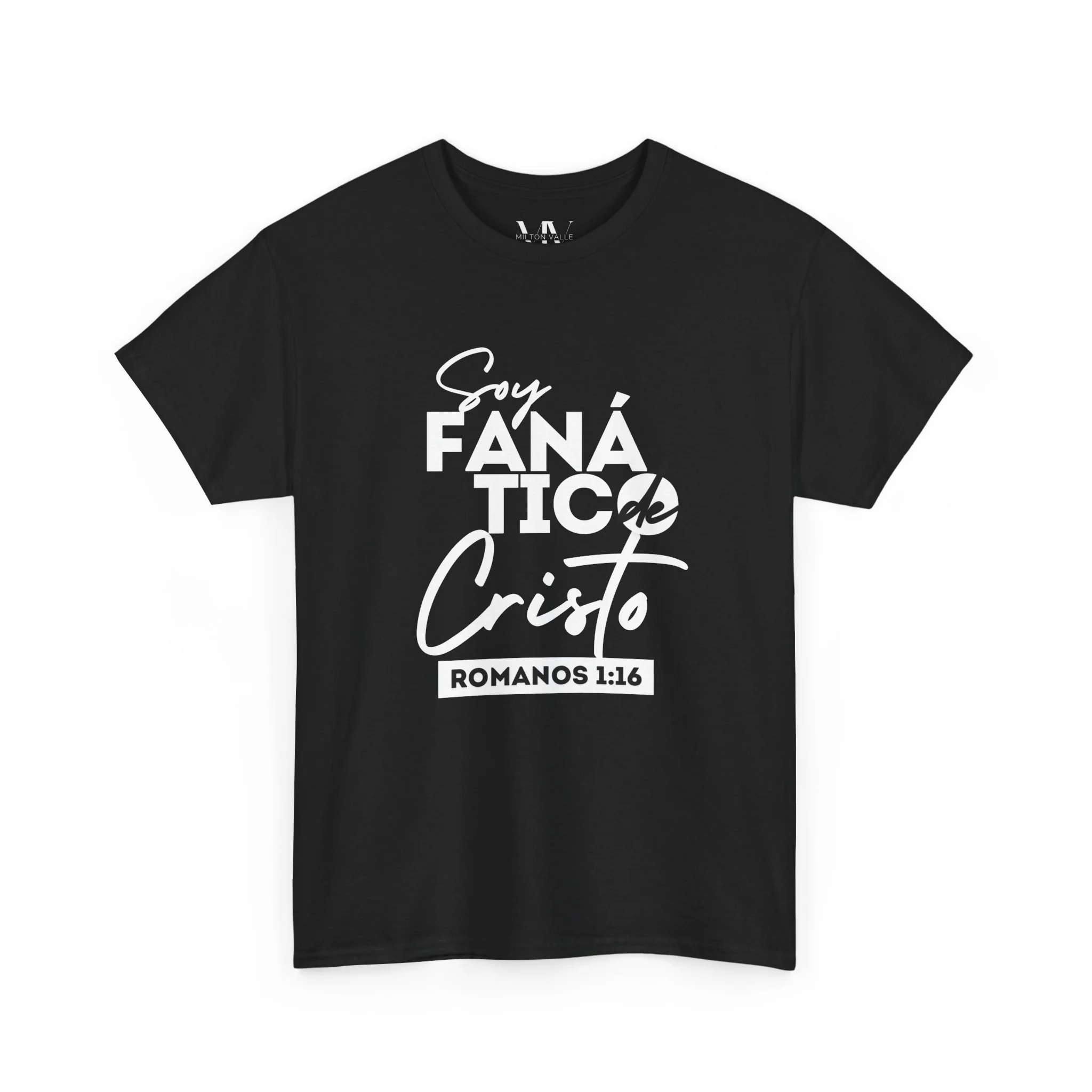 A soft, sturdy black tee that wears like a quiet declaration. Bold white lettering reads “Soy FANÁTICO de Cristo” with a small Romans 1:16 reference, blending faith-driven energy with modern street-style lettering. The medium-weight cotton holds print detail crisply while the classic crew silhouette and tear-away label keep everyday comfort front and center. It’s a shirt that settles into church meetups, neighborhood outreach, or casual days when you want your conviction to speak plainly without shouting.